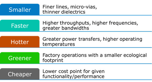 The evolution of PCB technology is driven by the five factors discussed below, as illustrated in Figure 1.